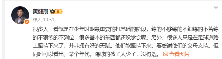 除此之外在社交平台上,一段U23男足在赛前的热身画面更是成为众矢之的。视频中年轻球员的基本功惨不忍睹,无人防守下的包抄射门非常差。黄健翔分析称这是球员练的不够练的不细,练的不苦练的不狠练的不到位。